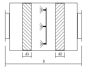 風(fēng)管厚度(D)= (d1+d2)Х(2+1+0.5)